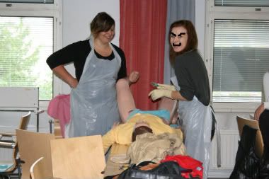 Mulla alkoi kaksi viikkoa sitten harjottelujakso sotavammasairaalassa, ja voin sanoa että rankkaa on ollut. Ensimmäisen päivän jälkeen olin valmis jo jättämään leikin kesken ja vaihtamaan koulua ja alaa. Mutta pinnistellen ja ponnistellen jatkoin harjottelua. Meinasin pyörtyä kerran ja paikat on ihan hajalla, mutta muuten on sujunut oikein hyvin!